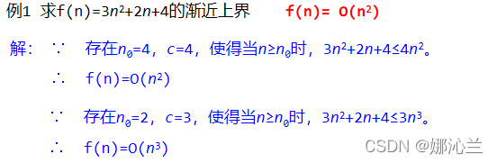 3)上界g(n)的阶越低,评估越准确,结果越有价值,通常将这个最有价值的g(n)称之为f(n)的“紧凑上界”或“紧确上界”。