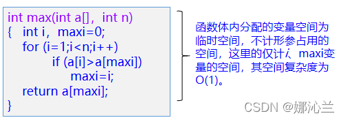空间复杂度是对一个算法在运行过程中临时占用的存储空间大小的量度,一般也作为问题规模n的函数,以数量级形式给出,记作:
