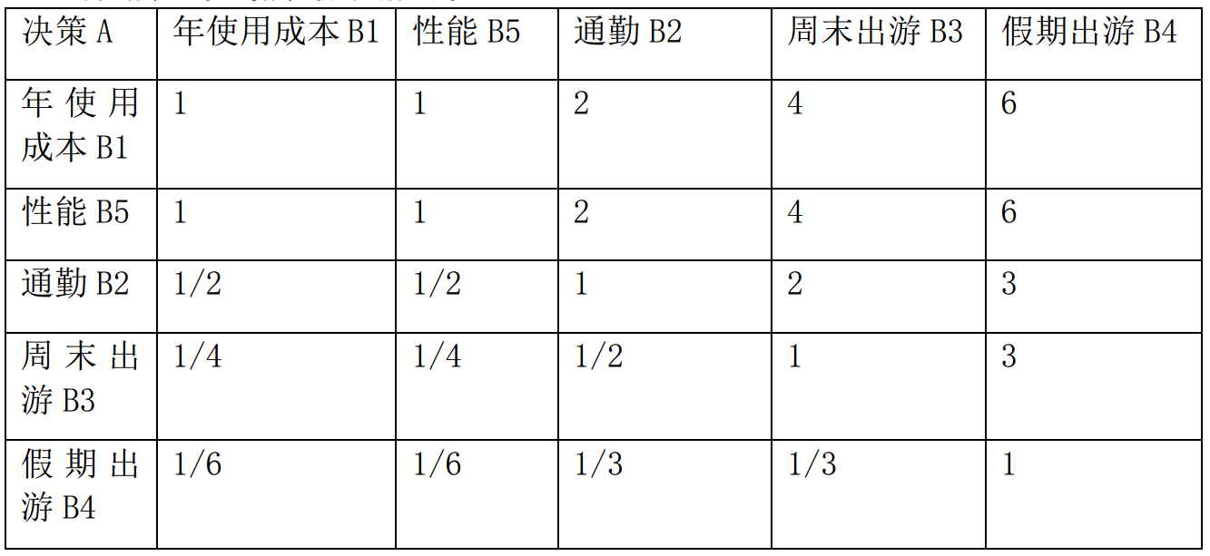 通过查阅资料将两种类型的车(一定注意控制变量,比如价格不能相差太远)的性能指标罗列出来逐一对比,可以自己设定一套定量评分规则,进而最终确定性能判断矩阵。