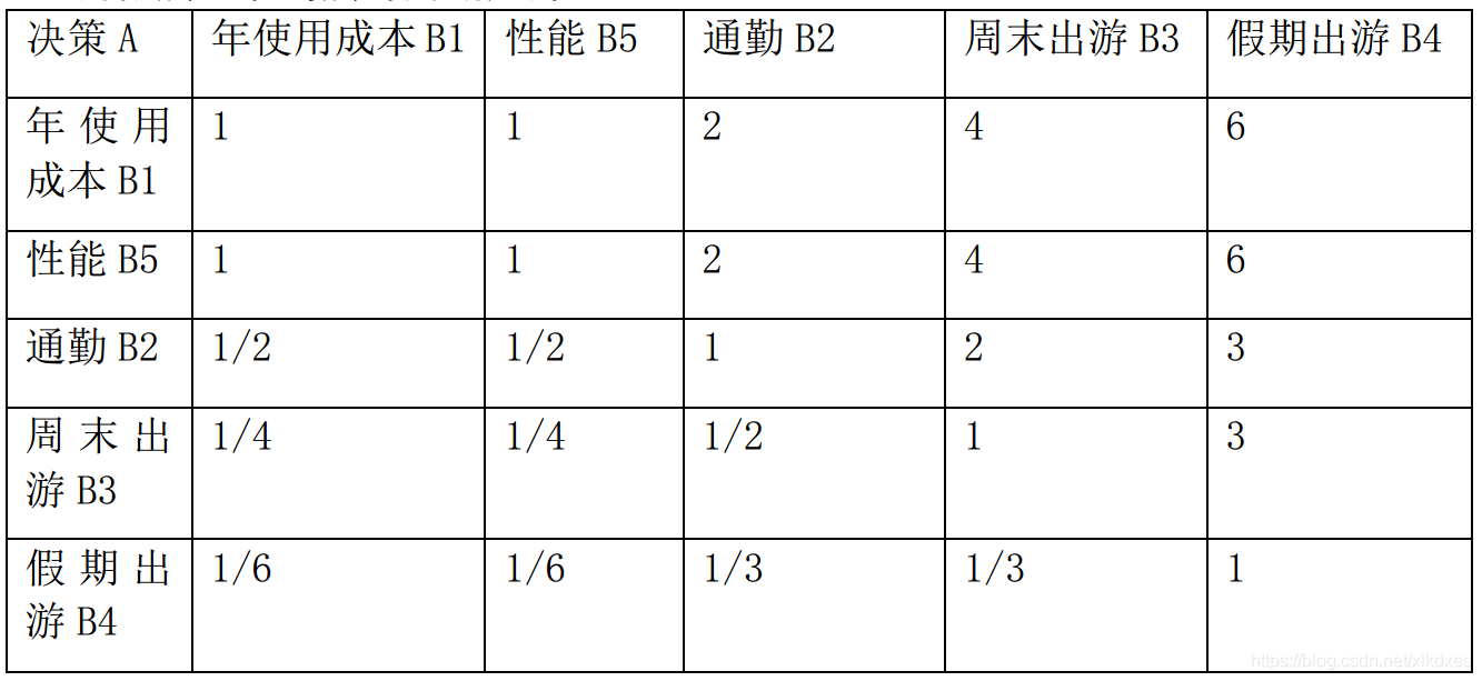 解释:比如对于第三行第四列的单元格数据可以解释为花费比居住强烈重要。
