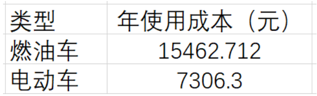 总结信息:年使用成本上,与燃油车相比,电动车具有明显的令人满意程度。