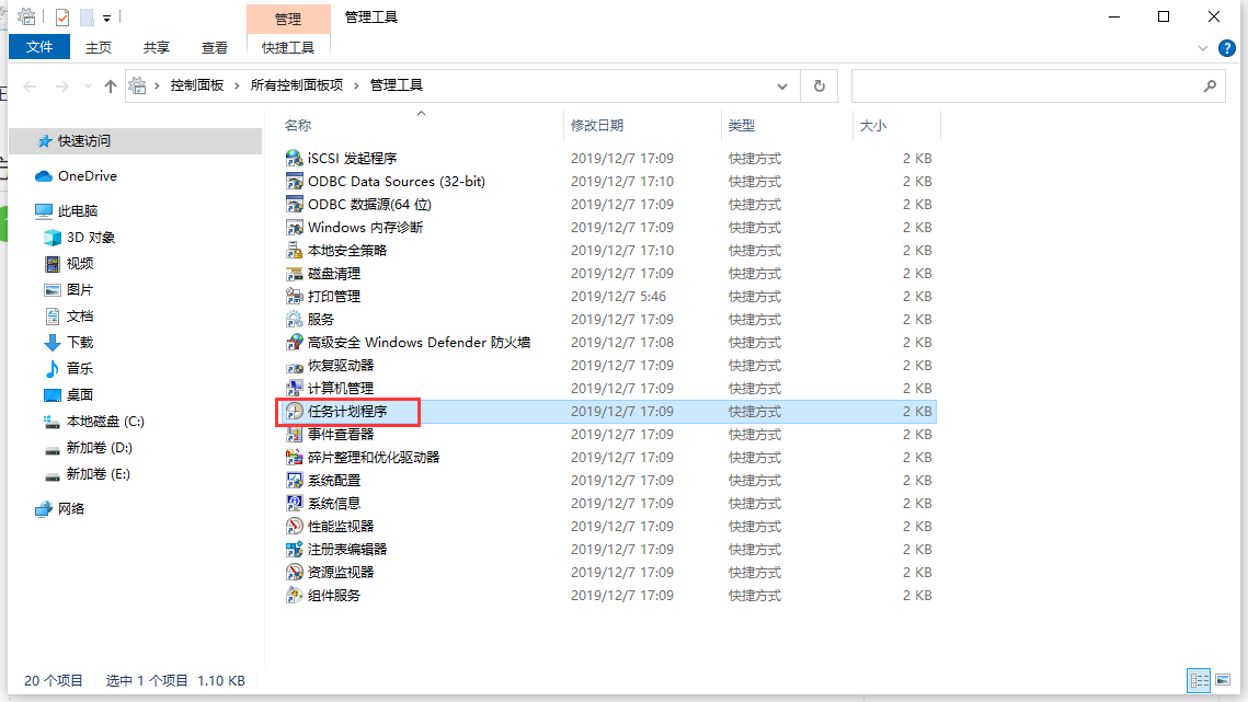 1、首先打开系统的管理工具,选择《任务计划程序》;
