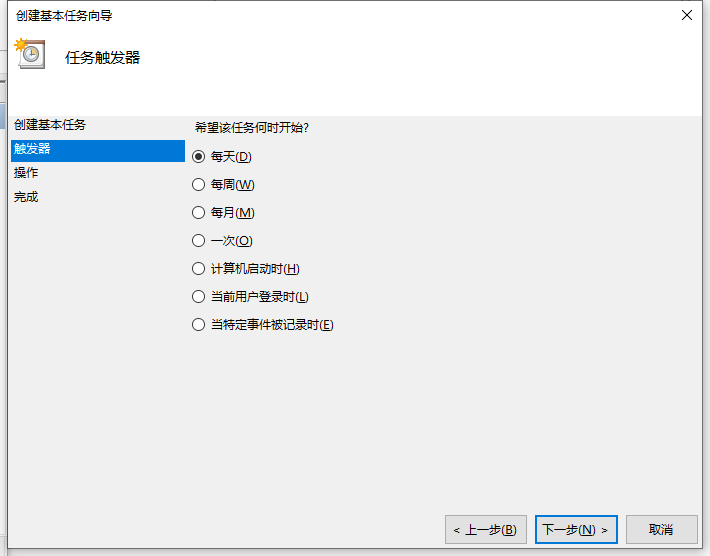 3、点击下一步,选择任务何时开始;