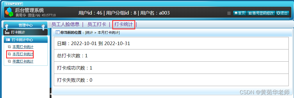 我的本月打卡统计:员工本月的打卡信息