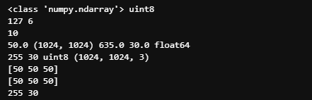 print(img.max(),img.min(),img.dtype,img.shape)
