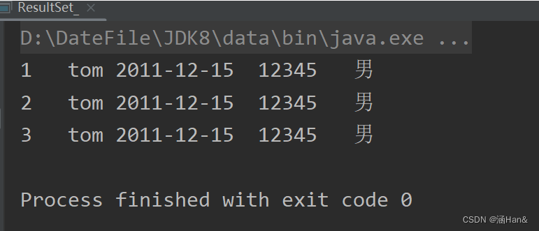 while (resultSet.next()){//光标向后移动,如果没有更多行,返回false