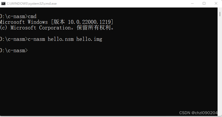 保存为hello.nsm,输入c-nasm hello.nsm hello.img将其编译为软盘文件