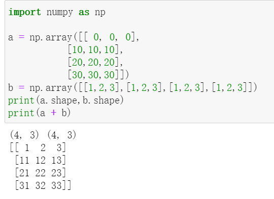 import numpy as np a = np.array([[1,1,1],[0,2,5],[2,5,-1]]) print ('数组 a:')