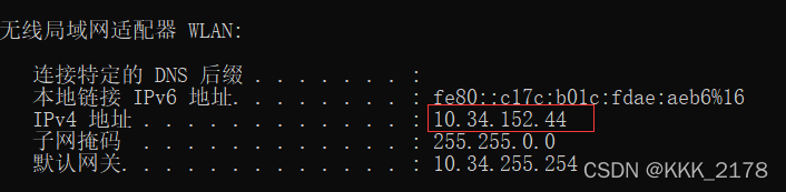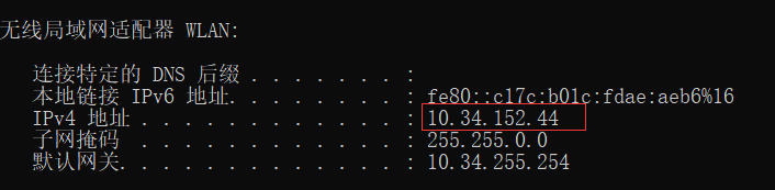打开Wireshark,用命令提示符查看本机ip