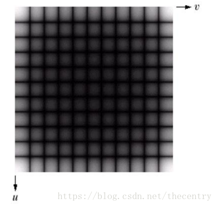 在数字图像处理中,常常需要将F(u,v)的原点移到N*N频域的中心,以便能清楚地分析傅里叶谱的情况,平移前空域、频域原点均在左上方。要做到这点,只需令上面平移公式中的:u0=v0=N/2;