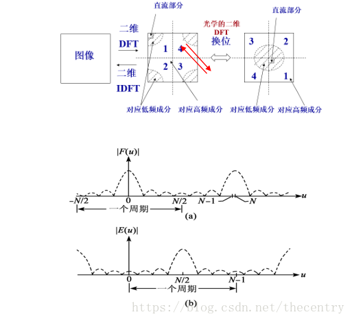 上式表明:如果需要将图像傅里叶谱的原点从左上角(0,0)移到中心点(N/2,N/2),只要f(x,y)乘上因子进行傅里叶变换即可实现。