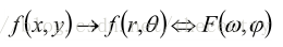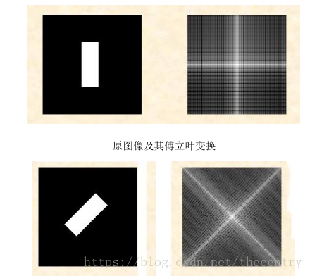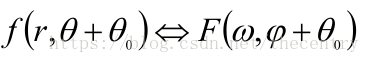如果f(x,y)被旋转W,则F(u,v)被旋转同一角度。即有傅里叶变换对:
