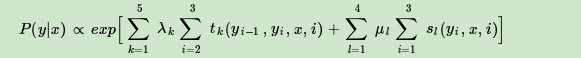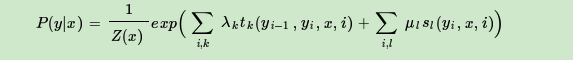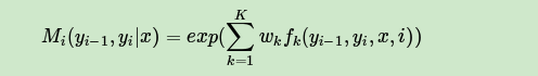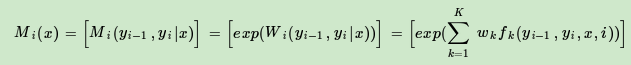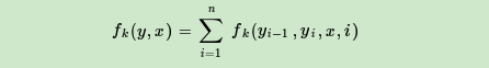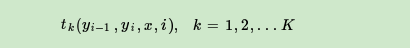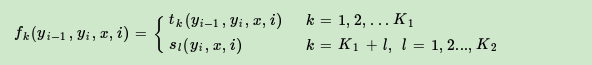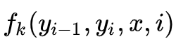 第二类是定义在Y上下文的局部特征函数,这类特征函数只和当前节点和上一个节点有关,记为: