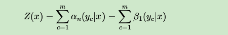之前的部分标记序列的非规范化概率。之所以是非规范化概率是因为我们不想加入一个不影响结果计算的规范化因子