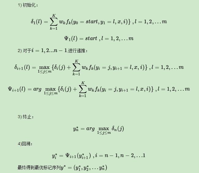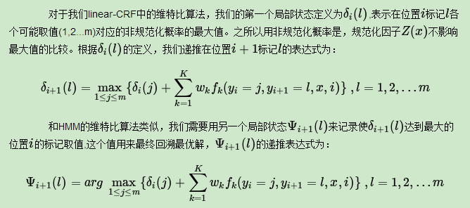 现在我们总结下 linear-CRF模型维特比算法流程: