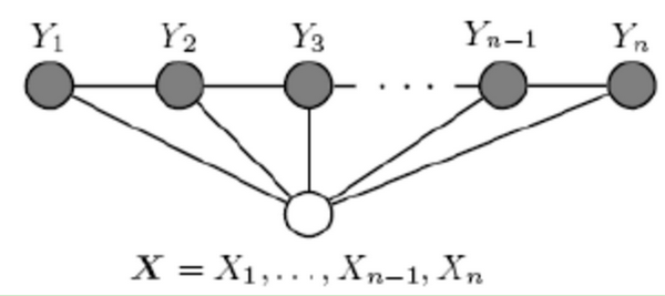 一般考虑如下图所示的结构:X和Y有相同的结构的CRF就构成了线性链条件随机场(Linear chain Conditional Random Fields,以下简称 linear-CRF)。