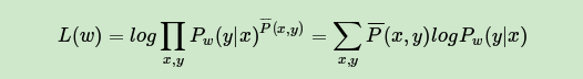 在使用梯度下降法求解模型参数之前,我们需要定义我们的优化函数,一般极大化条件分布 的对数似然函数如下: