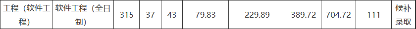 政治74,英语二77,数学二121,408专业课96,总分368,排名54,今年软工专硕录取75人。