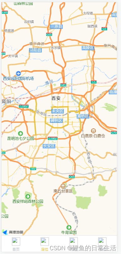 这里注意了,在pc中有可能会没展示出来,但是用真机测试时,是没有任何问题的,并且会出现如图所示内容,不过有个小问题是,经纬度出现误差,目前尚未解决,后面找到方法我会写在该文章的下面