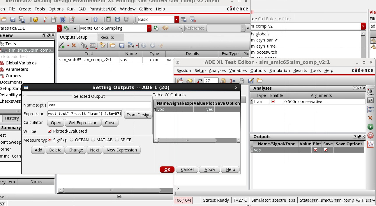 一般地,整个ADC进行蒙特卡洛仿真是不太现实的,可以对局部模块如比较器,运放进行仿真。进而可验证比较器的失调是否满足要求,运放的增益、失调电压是否具有工艺稳定性。具体步骤简要描述: