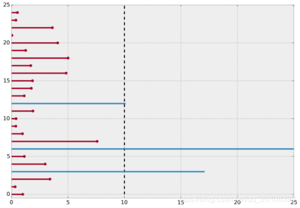 如果我们不删除发生右侧截断的样本而直接求平均值,仍然会低估这个群体的平均生存时间,要注意的是,我们只能观测到10时刻之前的事情,10时刻之后的我们并不能看到。