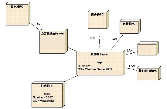 大部分客户都会具备一定的IT基础环境(如具备局域网、一些服务器、某些软件平台等),软件系统需要基于当前的IT基础环境来规划,这时我们可以使用部署图来做这个规划。