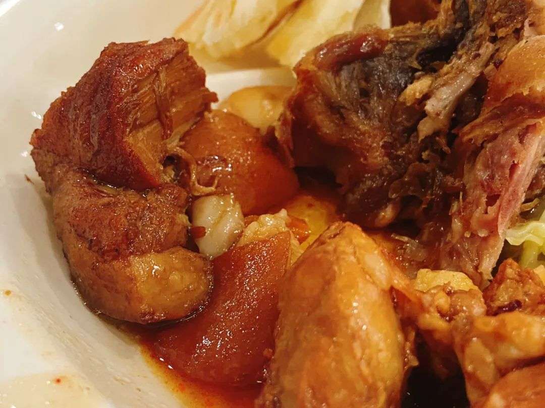 我必须要说,红烧肘子好香,全是大块大块肥瘦相间的肉,炖的猪皮软糯、猪肉入口即化,我相信一个月胖十斤是真的。