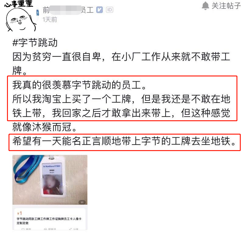 不会还有人不知道(中文)字节跳动(英文)Bytedance的工牌,已经成为年轻人的社交货币了吧。