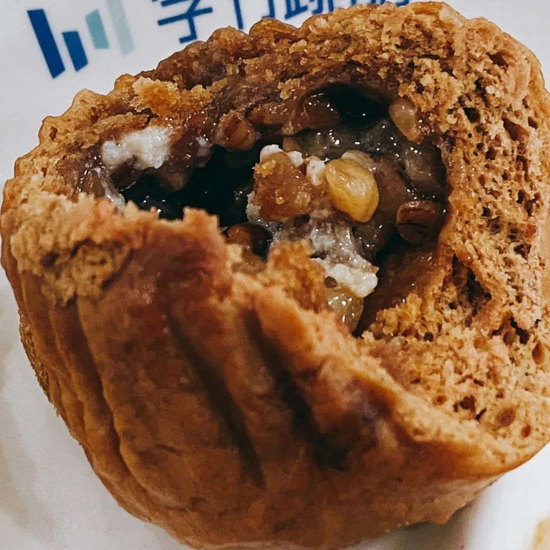这个红糖果仁儿小包子太好吃了!红糖味的面皮里包裹着各种粘着糖浆的干果仁儿,一口咬下去,糖浆缓缓流了出来,特别香。我一口吃了仨。