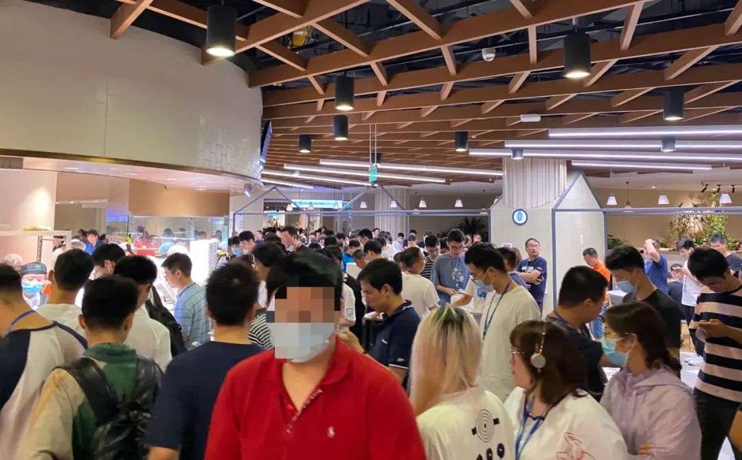 食堂位于网易办公楼的地下一层,总面积据说在五千平米左右。我们到的时候正是饭点,所以一睹了网易员工排队取餐的“盛况”。