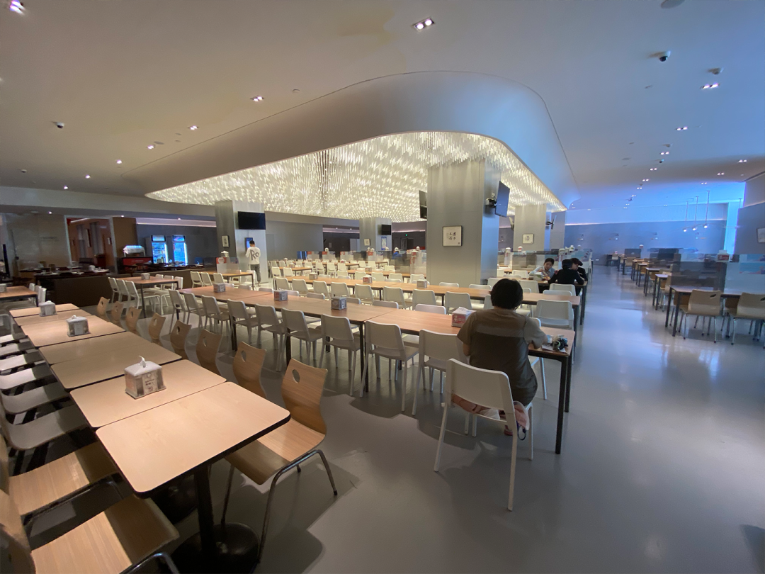 食堂每一个餐位,都用小隔板隔开,遮得严严实实 。如果不是饭点儿人满为患的话,竟然有一人食餐厅的感觉。