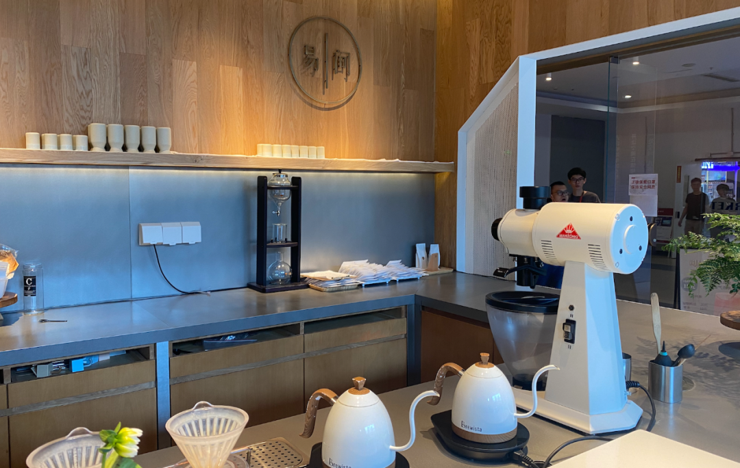 吃饱后,我们来到了网易的“易间”咖啡厅小憩一下。 你还真别说,这里的设备还整的挺像那么回事,比如Mahlkonig迈赫迪的磨豆机和La Marzocco的半自动咖啡机。