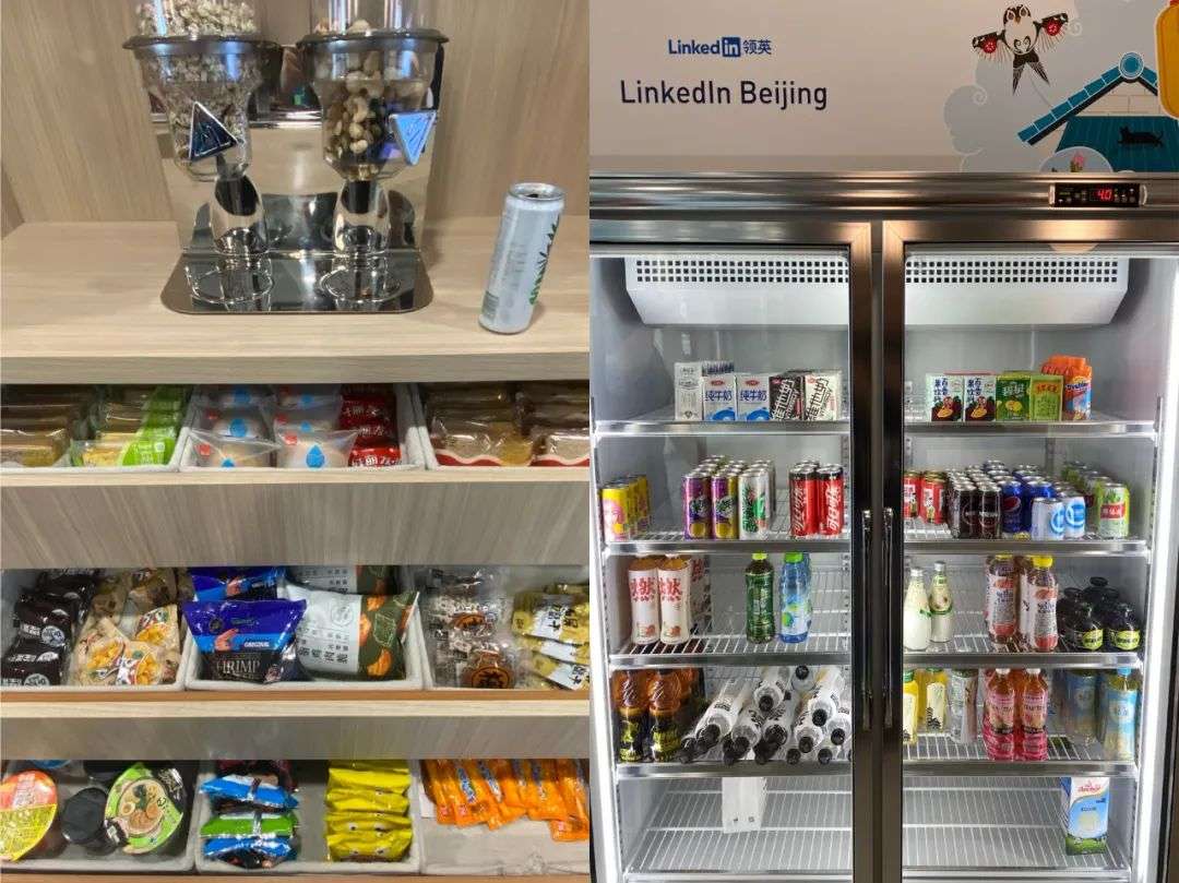 吃完午餐以后,Linkedin的好兄弟带我们来到了员工休息区。 这里简直就是爱吃零食星人的天堂,外面售价匪人的饮料在这里却可以免费拿,且种类繁多,简直是免费版的便利蜂!