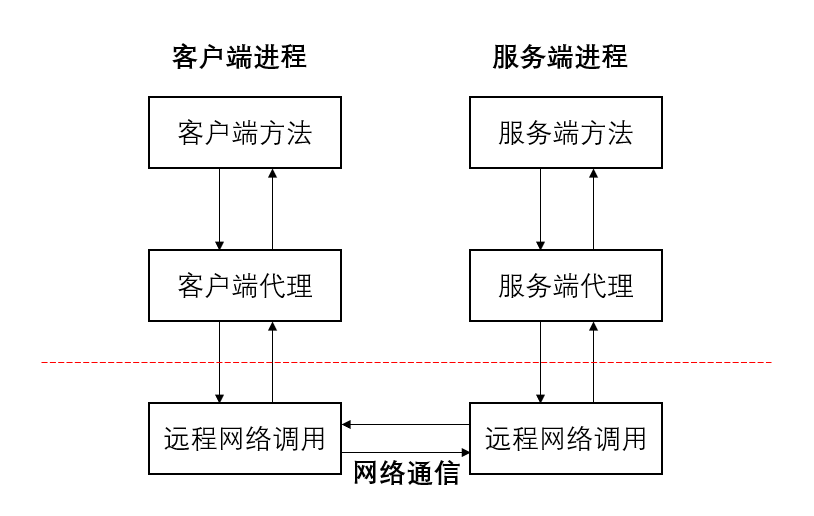 客户端代理:将接口封装成代理对象,并序列化请求参数、反序列化响应结果,使用远程传输协议调用服务端,(例如:Socket、Netty、RMI、HTTP等)。