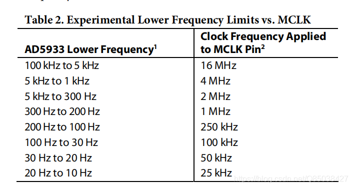 作者再调试AD5933过程中,需要输出100Hz~100KHz扫频信号;