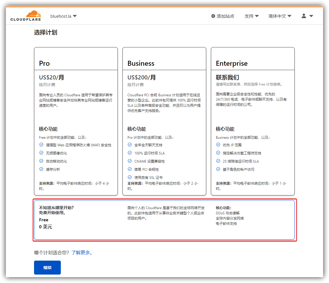 3.选择CDN套餐,一般用户选择FREE版本的