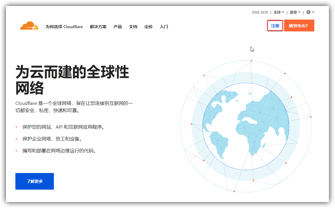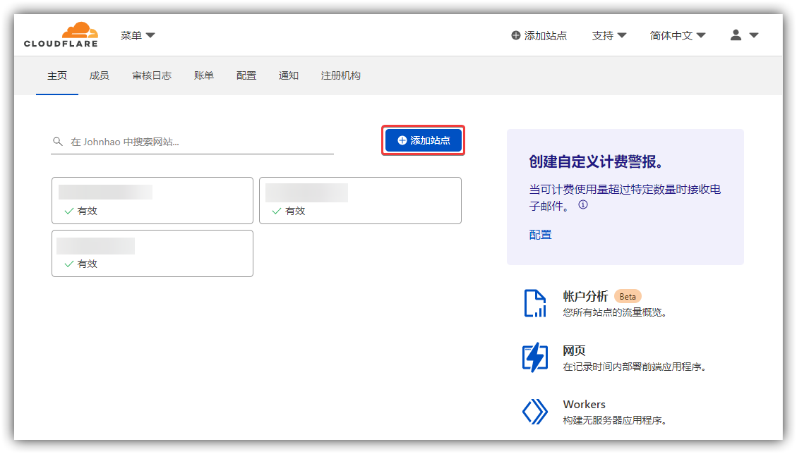 1.到CDN官网(www.cloudflare.com),注册账号并登陆进入。