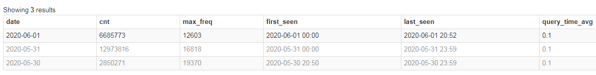 - 查询digest中LAST_SEEN>now()-1mins的数据:df_1min