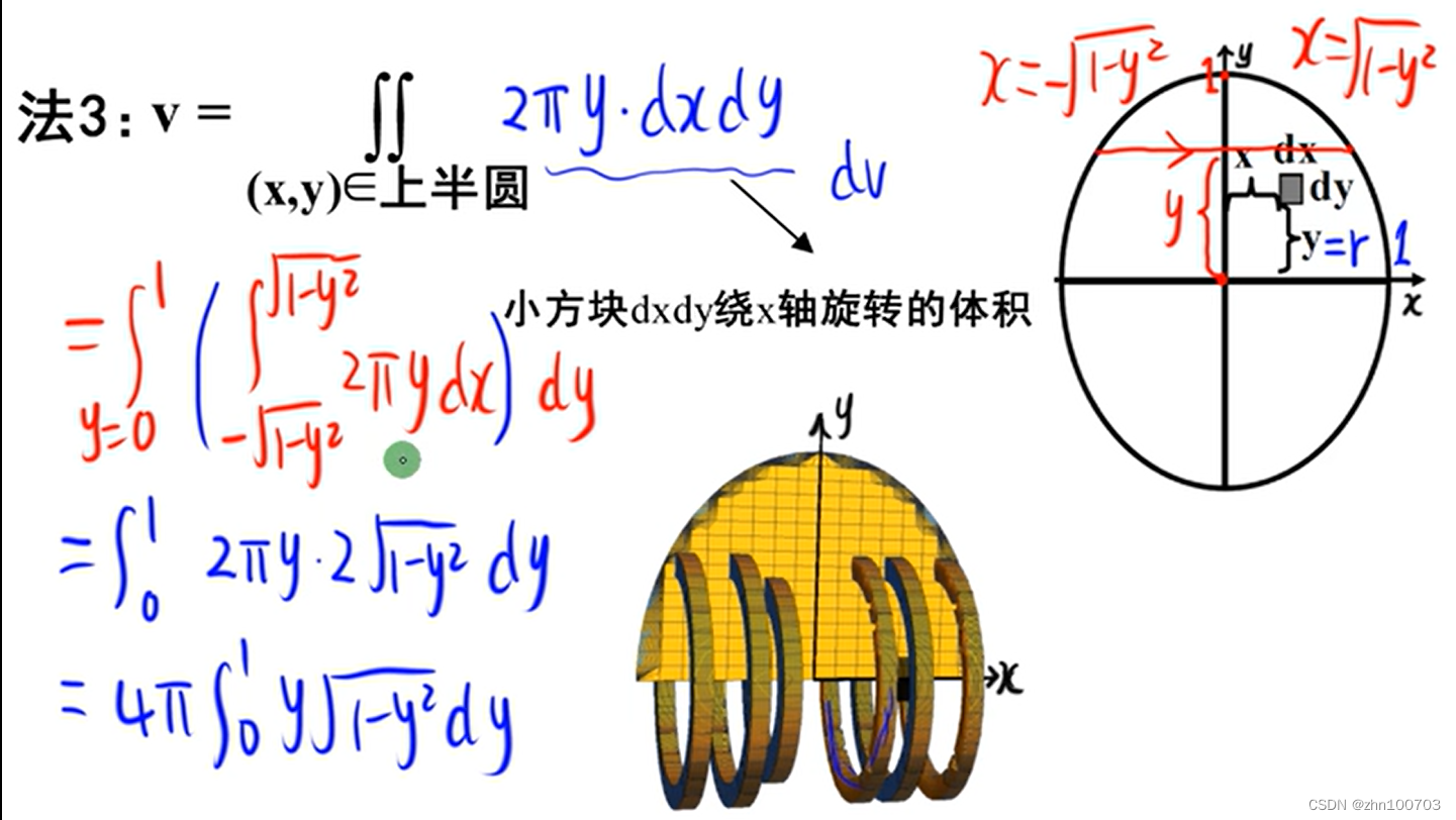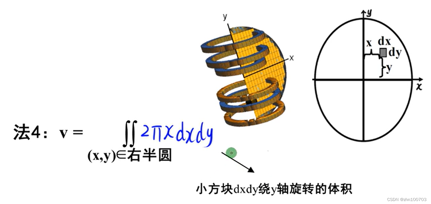 和方法3相似,只不过体积微元是通过小方块沿y轴旋转得到,这里不再赘述