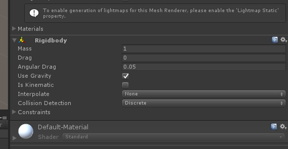 Mass:质量, 数值越大物体掉得越快。尽量在0~9之间,超过了10,看不出效果。