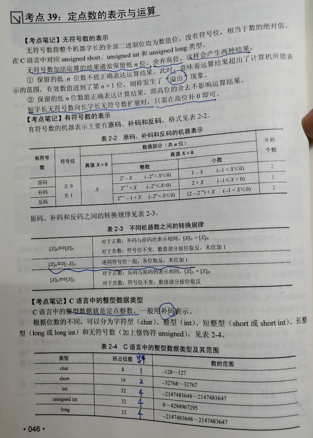 定点数的表示:n位无符号数可以表示0~2^n -1,n位有符号数可以表示-2^(n-1)~2^(n-1)-1,一般用补码表示。