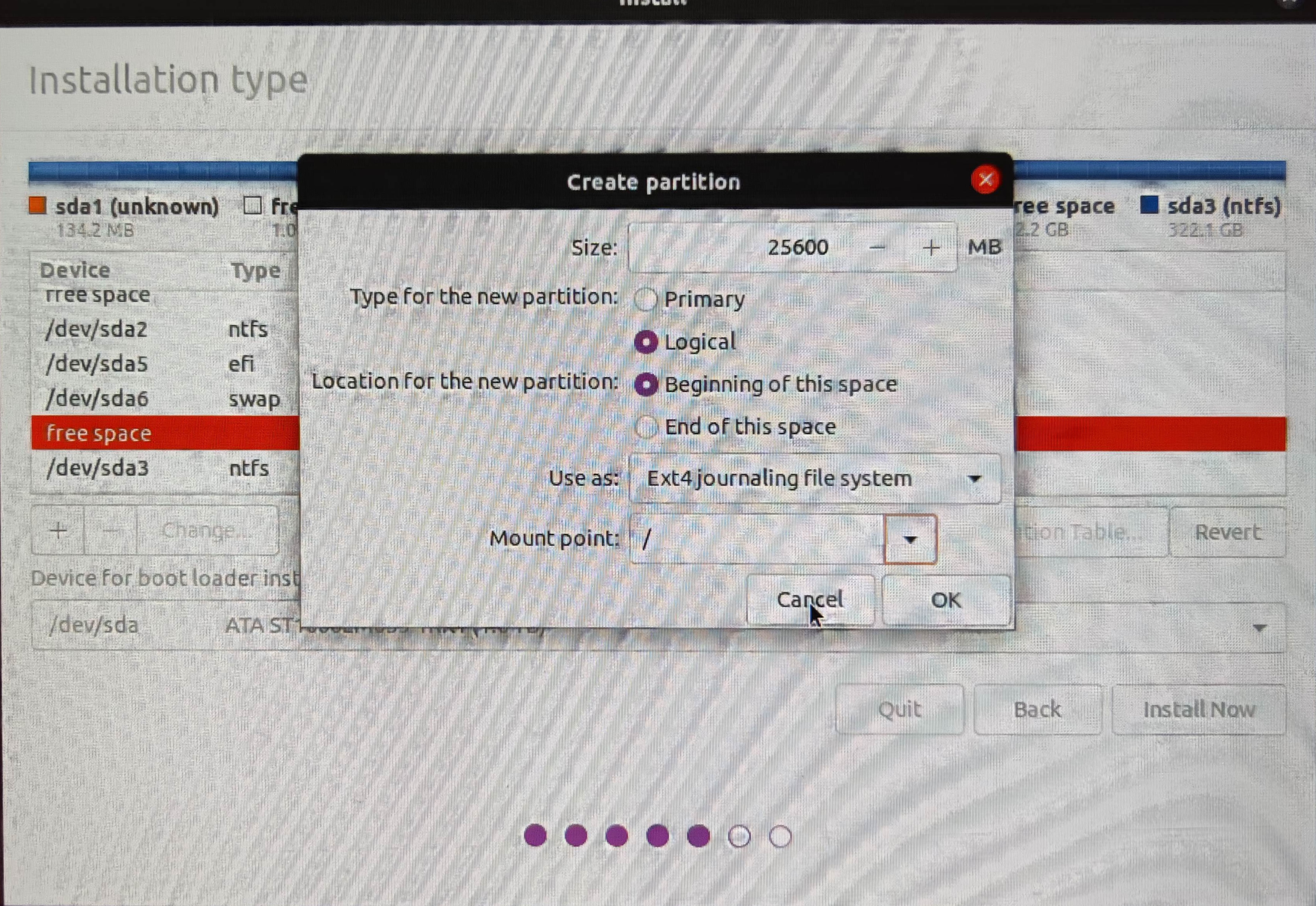 ubuntu系统分区主要划分为5个部分,由于拿出了93个G的硬盘空间用于ubuntu安装,本文按该大小分配空间。