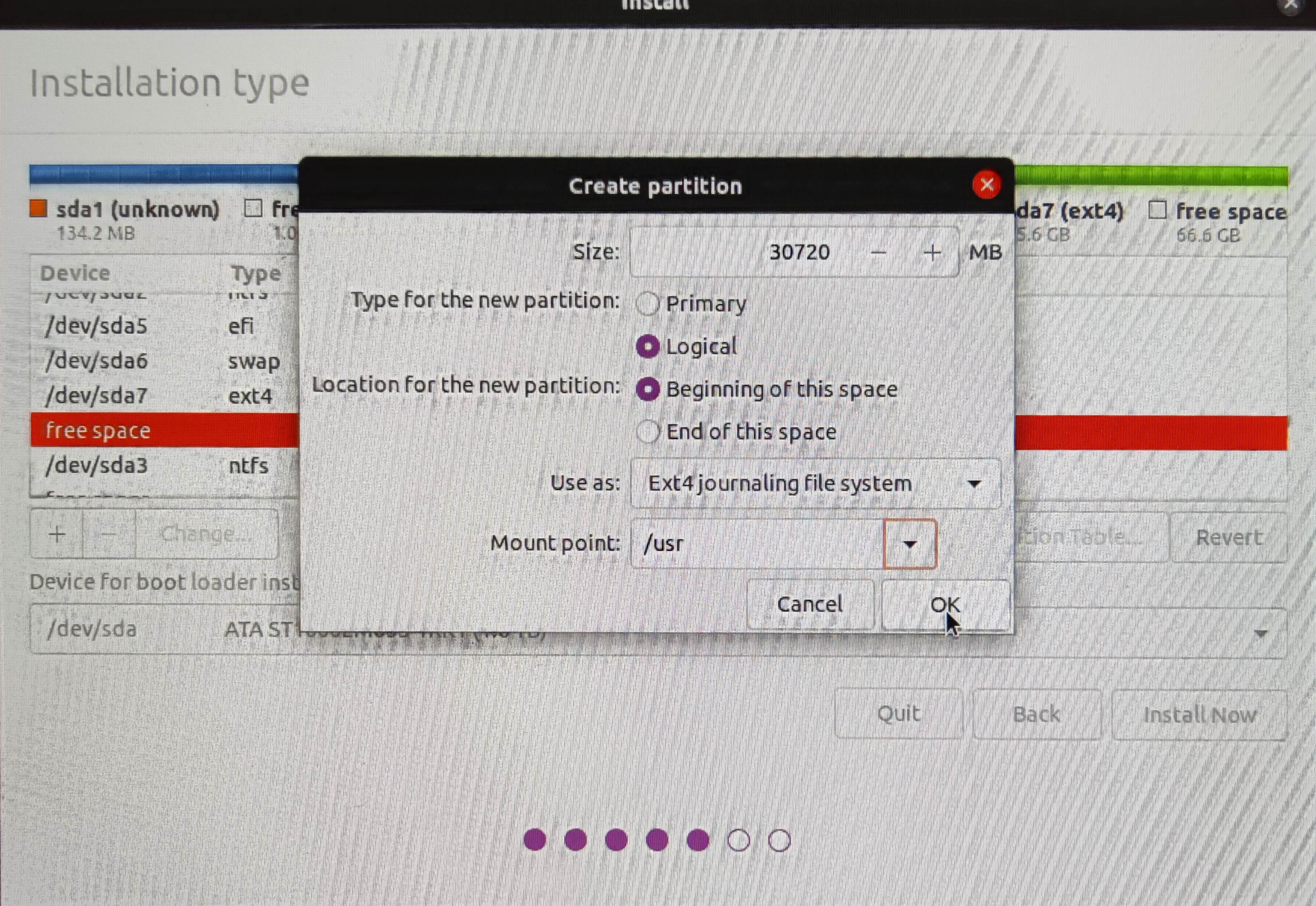 4、挂载点:/usr