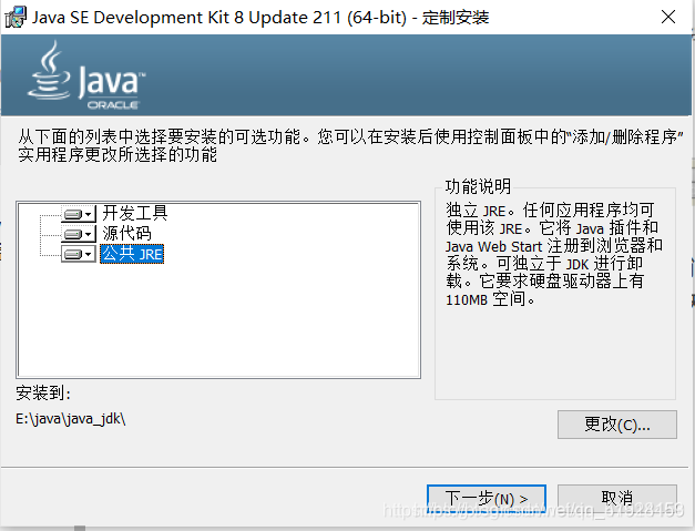 再之后是JRE的安装,我们讲其安装到之前已经准备好的文件夹下即可。