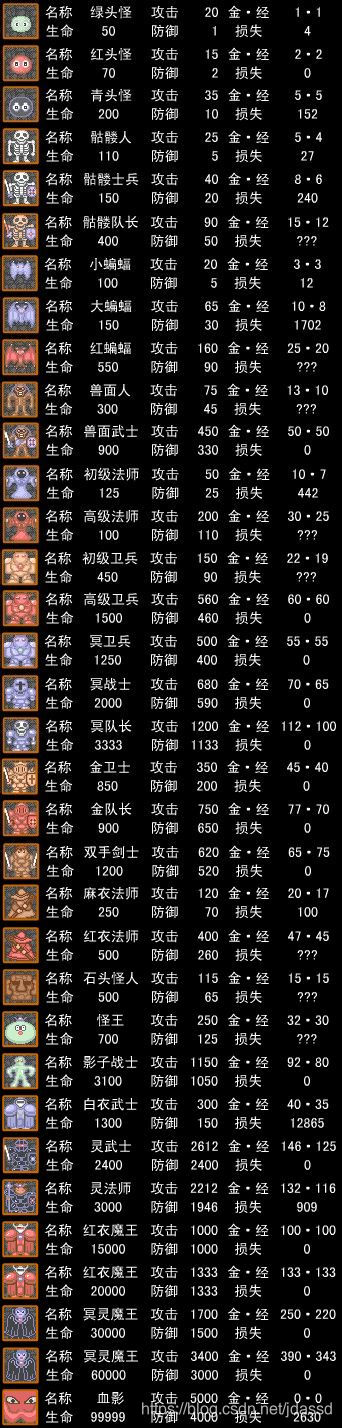 - 该游戏内容完全复制于经典魔塔(V1.12),但是只完成了一半关卡、以及一些道具从该游戏中删除。主要原因是之后的关卡和道具的使用基本属于代码的复制黏贴以及极少量的修改,遂没有写后续关卡。