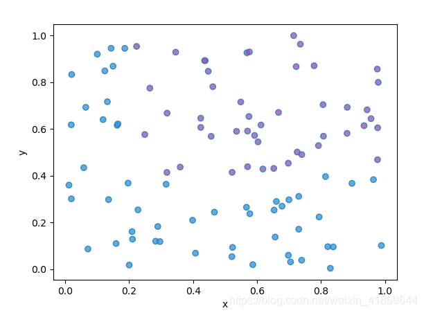 df = pd.DataFrame(np.random.random((100,2)), columns=["x","y"])