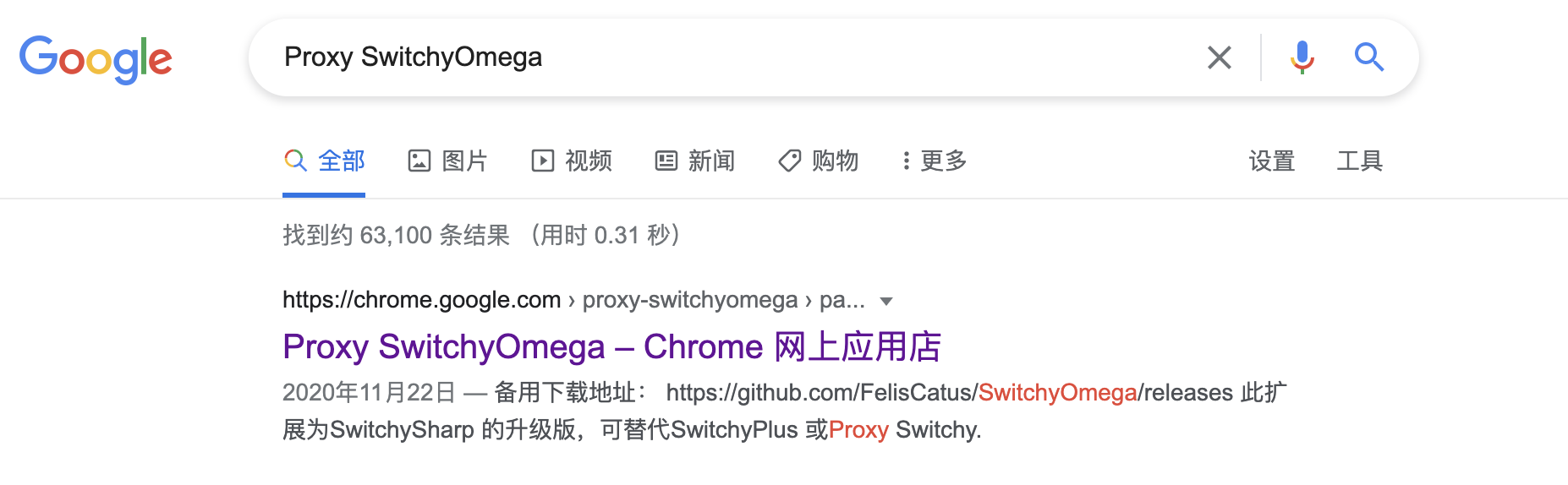 在chrome浏览器中搜索Proxy SwitchyOmega