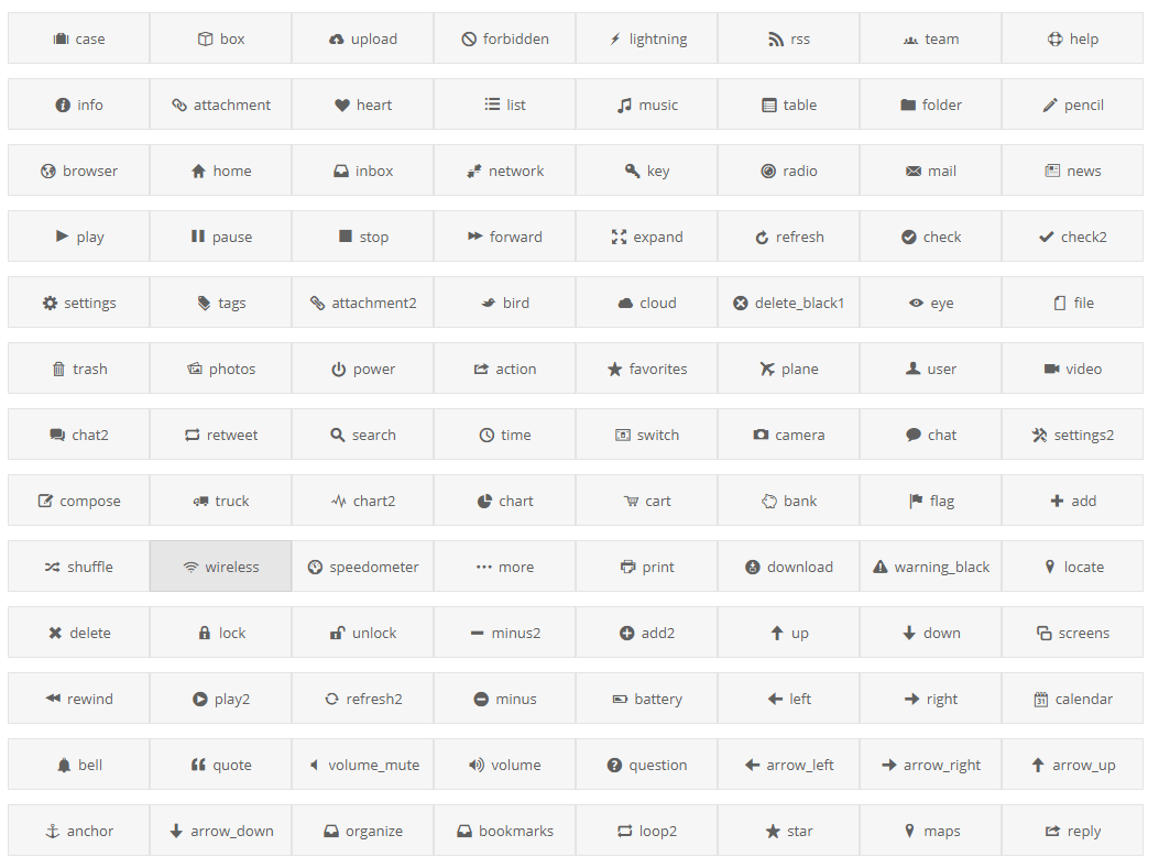 如下图,这些图标实际都是可以直接使用的,我花了点时间把对应图标与图标名例了出来,以后使用就方便多了。