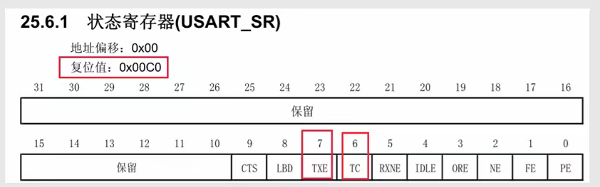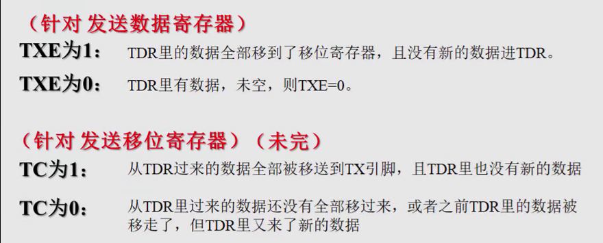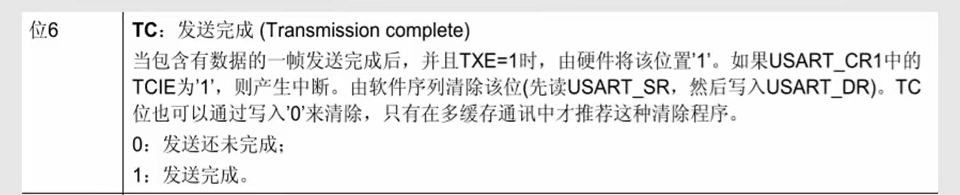 我们理解一下 TXE 是先写入DR,然后再读SR,让下一位补上来,然后发送清空,所以我们上面程序能正常发送,但是如果是TC的话,就无法进行了,因为TC是相反的